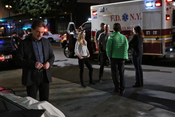 The Replicator zeroes in on the BAU when the killer targets one of the team as the next victim on the eighth season finale of CRIMINAL MINDS, Wednesday, May 22 (9:00-11:00 PM, ET/PT) on the CBS Television Network. L-R: Joe Mantegna as David Rossi, (in background) A.J. Cook as Jennifer "JJ" Jareau, Thomas Gibson as Aaron Hotchner, Shemar Moore as Derek Morgan, Matthew Gray Gubler as Dr. Spencer Reid, and Jeanne Tripplehorn as Alex Blake. Photo: Robert Voets/CBS ©2013 CBS Broadcasting, Inc. All Rights Reserved.