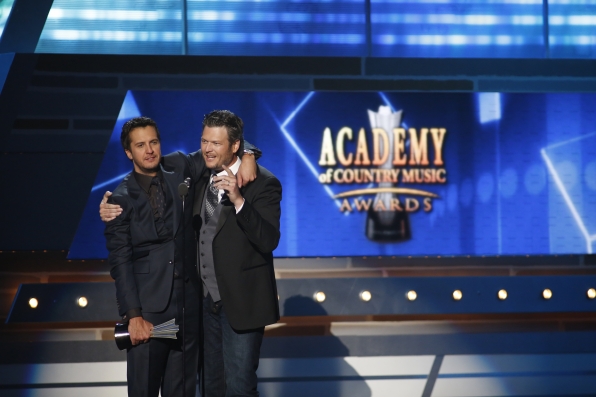 Luke Bryan and Blake Shelton embrace the end of the ACMs.