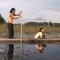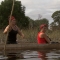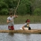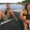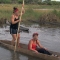 In this Road Block, Roller Derby moms Beth (left) and Mona (right) must propel a Mokoro, a traditional canoe, down the Thamalakane River to a near by village where they will exchange two goats for the next clue, THE AMAZING RACE Sunday March 31 (8:00-9:00 PM, ET/PT) on the CBS Television Network. Photo: CBS ©2013 CBS Broadcasting, Inc. All Rights Reserved
