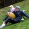 "Don't Let a Cheese Hit Me"--Mother/son team Margie and Luke travel to Interlaken, Switzerland and perform a "cheese race" in which they carry wheels of cheese up and down a slope to a little alpine hut in order to receive their next clue, on THE AMAZING RACE 14, Sunday, Feb. 15 (8:00-9:00 PM, ET/PT) on the CBS Television Network. Photo: Chris Castallo/CBS ©2008 CBS Broadcasting Inc. All Rights Reserved.
