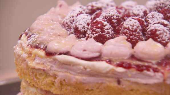 Snowcapped raspberries on the set of The American Baking Competition.