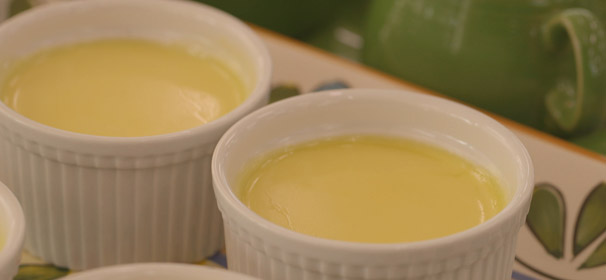 Remove from oven and immediately remove cups from water. -Cool on wire rack until room temperature. Cover with plastic and refrigerate. Take out and garnish with melted chocolate drizzle and banana slices that have been tossed in lemon juice. If not serving immediately, use banana chips as garnish.