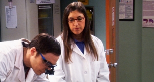 ÂSheldon is forced to use his two weeks of vacation time from work, so he goes to work with Amy in her biology lab. He feels the tasks she asks him to do are menial and boring, but when she finally relents and asks him to dissect a brain, he cuts his thumb and passes out from the pressure. Bernadette wants Wolowi... More...