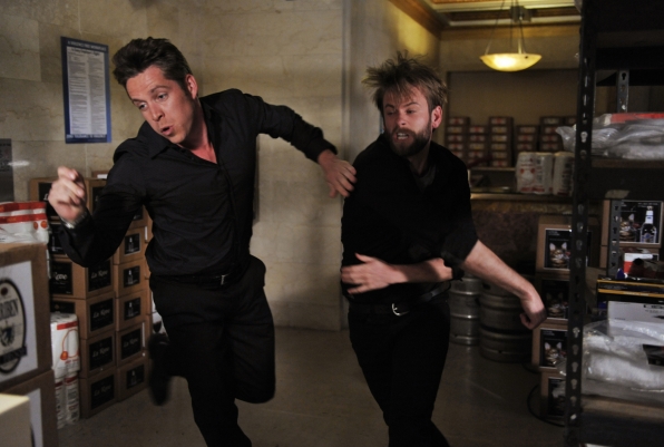 The BAU is called in to investigate a string of deaths in Manhattan tied to apparent ecstasy overdoses, and Hotch discovers that his estranged brother, Sean, is caught in the middle, on the two-hour eighth season finale of CRIMINAL MINDS, Wednesday, May 22 (9:00-11:00 PM, ET/PT) on the CBS Television Network. Pictured: Sean Maguire as Thane Parks, Eric Johnson as Sean Hotchner.