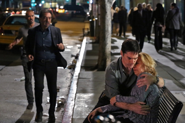 The Replicator zeroes in on the BAU when the killer targets one of the team as the next victim on the eighth season finale of CRIMINAL MINDS, Wednesday, May 22 (9:00-11:00 PM, ET/PT) on the CBS Television Network. Pictured: L-R: Shemar Moore as Derek Morgan, Joe Mantegna as David Rossi, Thomas Gibson as Aaron Hotchner, Jayne Atkinson as Erin Strauss. Photo: Robert Voets/CBS ©2013 CBS Broadcasting, Inc. All Rights Reserved.