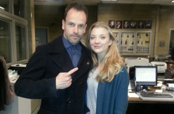 A first look picture of Natalie Dormer on the set of Elementary with star Jonny Lee Miller. Dormer is appearing in a special 3 episode arc as Sherlock's former lover, starting May 9.