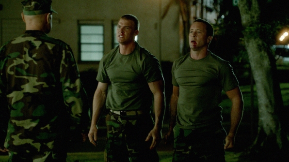 When McGarrett (Alex O’Loughlin, right, with Alan Ritchson, center and Terry O’Quinn, left) and Catherine cross into North Korea to retrieve the remains of his fallen friend, he recounts his last deadly mission there, on HAWAII FIVE-0, Monday, April 15th(10:00-11:00 PM, ET/PT) on the CBS Television Network. Photo: Best Possible Screen Grab©2013 CBS Broadcasting, Inc. All Rights Reserved.