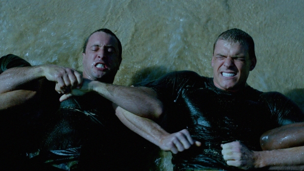 When McGarrett (Alex O’Loughlin, left, with Alan Ritchson, right) and Catherine cross into North Korea to retrieve the remains of his fallen friend, he recounts his last deadly mission there, on HAWAII FIVE-0, Monday, April 15th (10:00-11:00 PM, ET/PT) on the CBS Television Network. Photo: Best Possible Screen Grab©2013 CBS Broadcasting, Inc. All Rights Reserved.