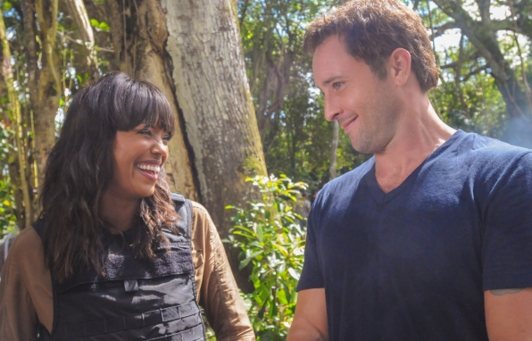 Five-0 allows a talk show host and her crew to follow them for the day, but the investigation turns dangerous when they have a run in with Wo Fat, on HAWAII FIVE-0, Monday, April 29 (10:00-11:00 PM, ET/PT) on the CBS Television Network. “The Talk” co-host Aisha Tyler (left, with Alex O’Loughlin, right) guest stars as talk show host Savannah Walker. Photo: Norman Shapiro/CBS ©2013 CBS Broadcasting, Inc. All Rights Reserved.
