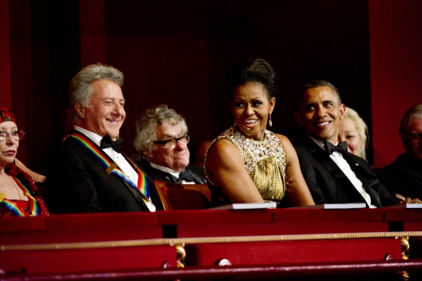 Pictured L-R: Honoree Dustin Hofman, First Lady Michelle Obama, and President Barack Obama. Photo: John Paul Filo/CBS ©2012 CBS Broadcasting, Inc. All Rights Reserved.