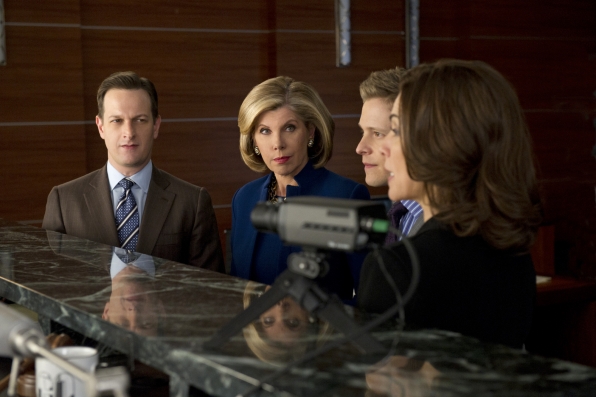 (Left to Right): Things get tense when Will (Josh Charles) and Diane (Christine Baranski) face off against Cary (Matt Czuchry) and Alicia (Julianna Margulies) after a client asks the firm to go through a mock trial to test their case. Photo: David M. Russell/CBS ©2012 CBS Broadcasting, Inc. All Rights Reserved.