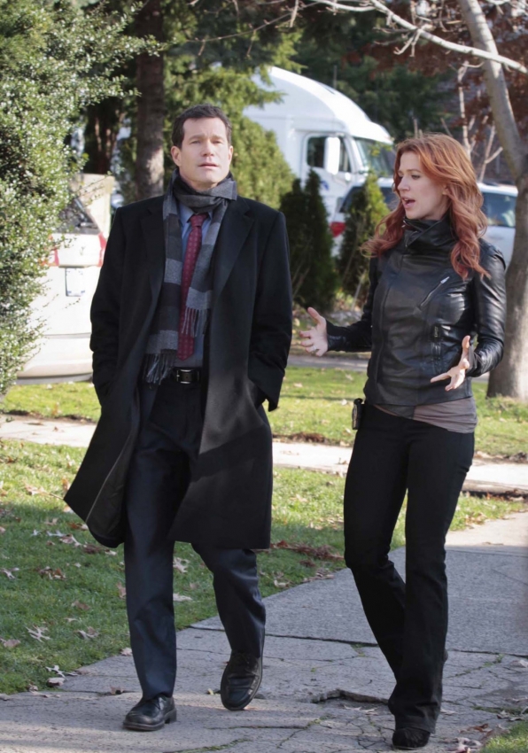 Carrie (Poppy Montgomery) and Al (Dylan Walsh) come up against a fraternity’s wall of secrecy during their investigation into the death of a college student. Photo: Giovanni Rufino/CBS ©2011 CBS Broadcasting Inc. All Rights Reserved. #Unforgettable
